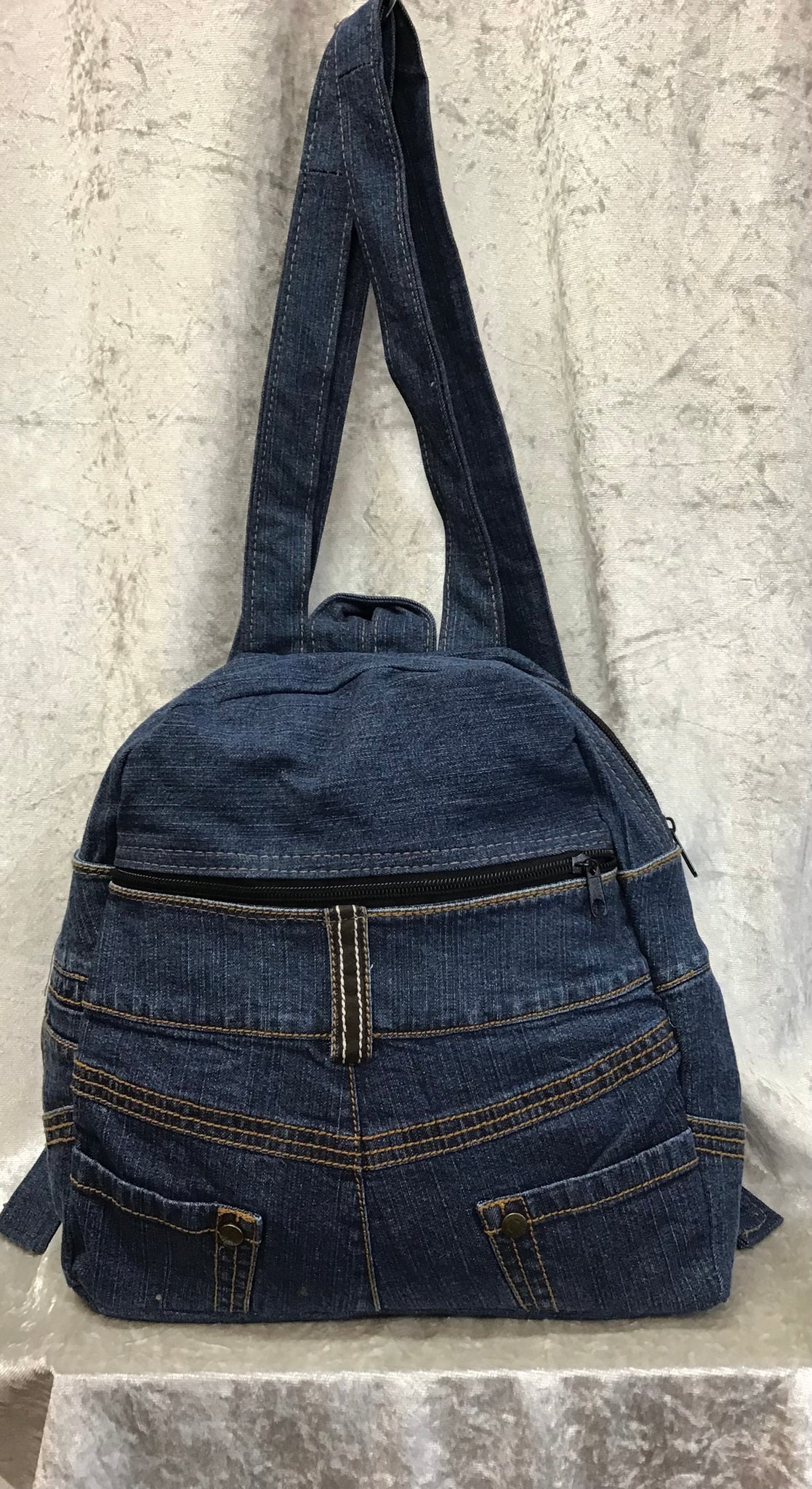 Turn heads and make a difference with our Recycled Denim Bag. Crafted from recycled denim, each bag is unique in shape and size. Perfect for the eco-conscious fashion lovers.