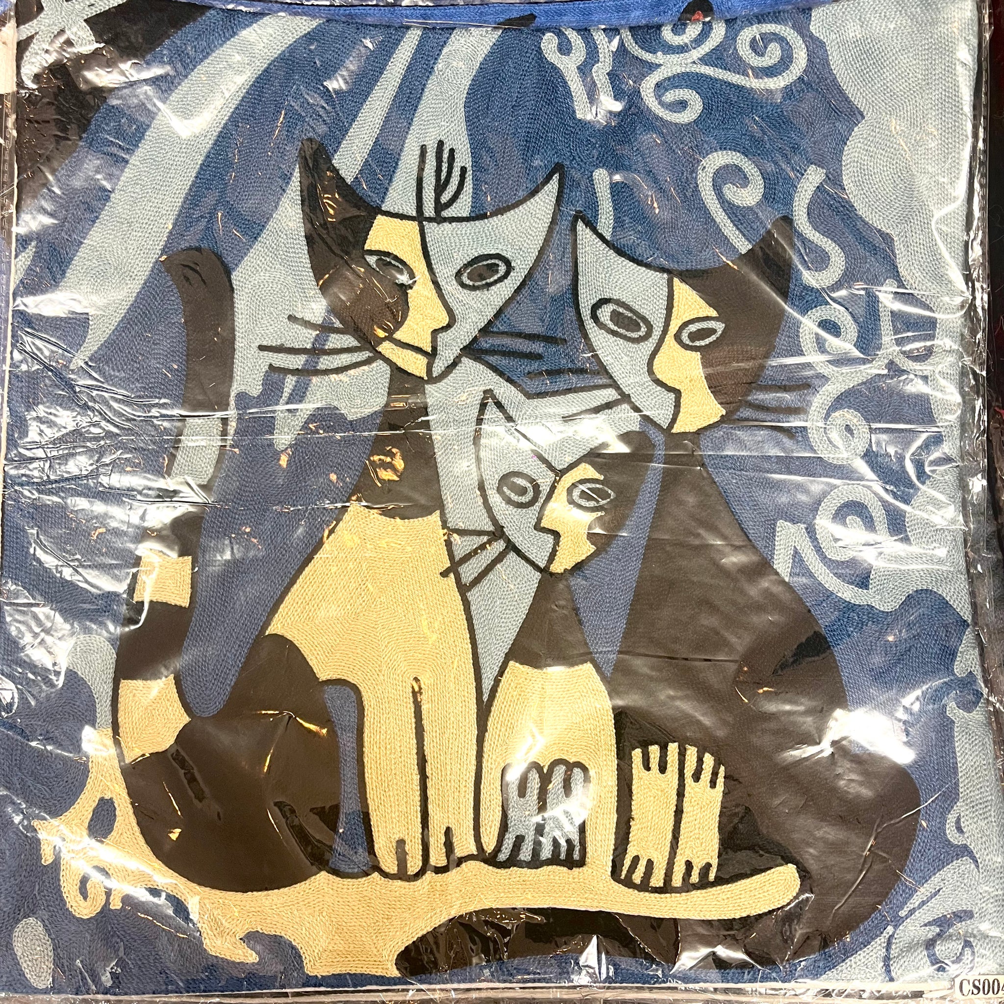 Cats 3 ‘Crewel’ Embroidered Cushion Covers