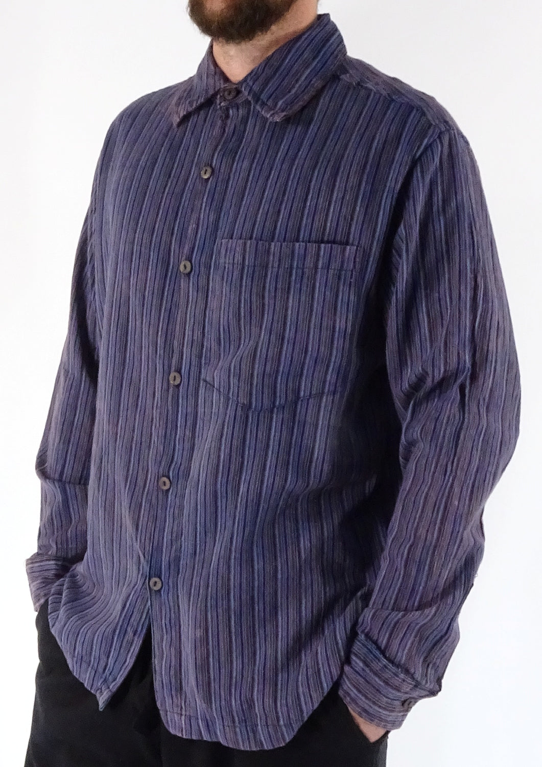 Stonewash Stripe Nepal Full Button Cotton Shirt - 100% Cotton