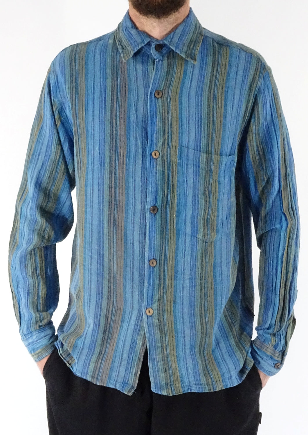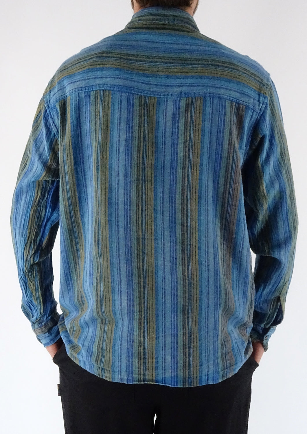 Stonewash Stripe Nepal Full Button Cotton Shirt - 100% Cotton